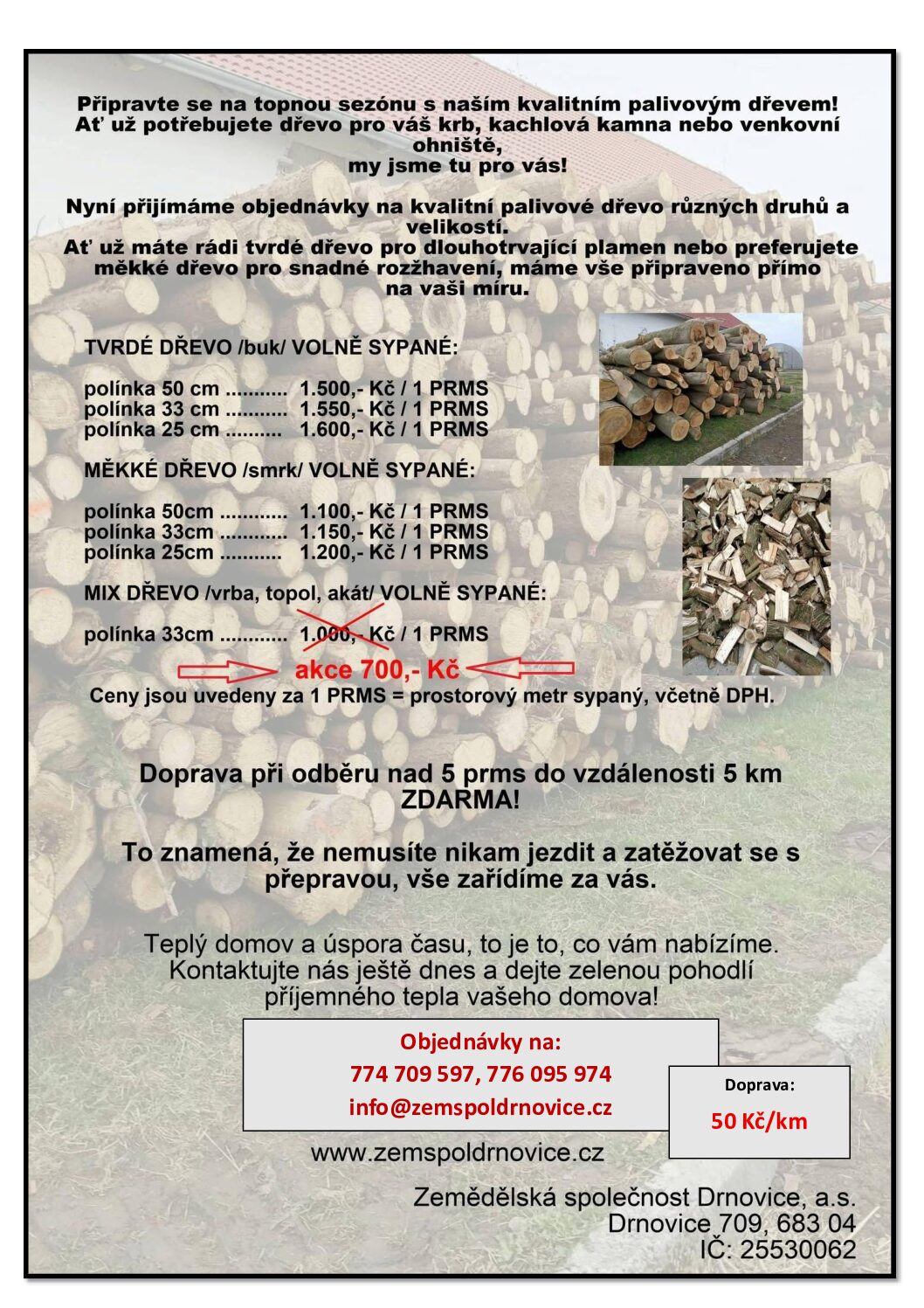 | Doprava | Seno, sláma, senáž | 50 Kč / km |